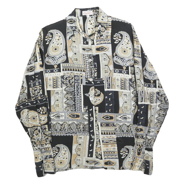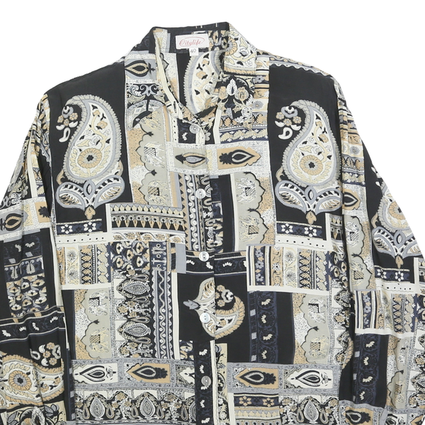 CITY LIFE Womens Black & Beige Paisley Print Shirt Long Sleeve Collared L