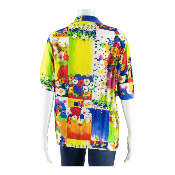 CITY LOOKS Womens Shirt Green Collared Crazy Pattern M