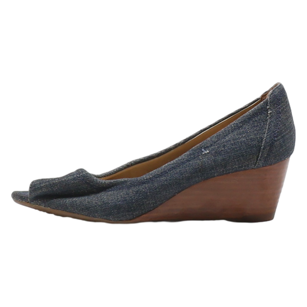 CLARKS Wedge Peep Toe Heels Blue Synthetic Womens UK 4.5