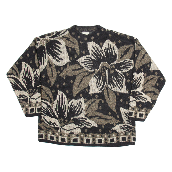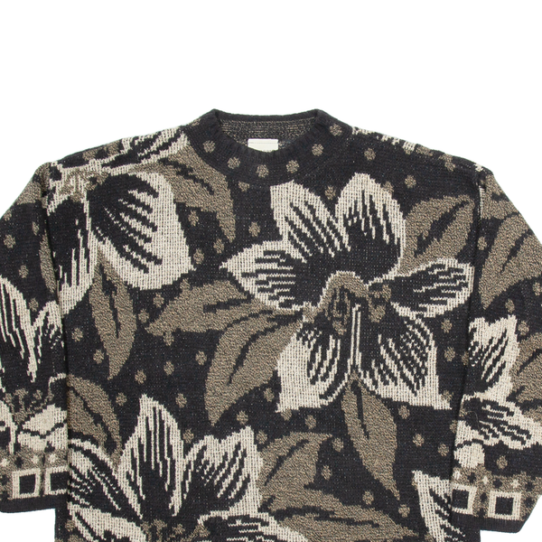 CLASSIC ELEMENTS Womens Patterned Jumper Beige Floral Tight Knit M