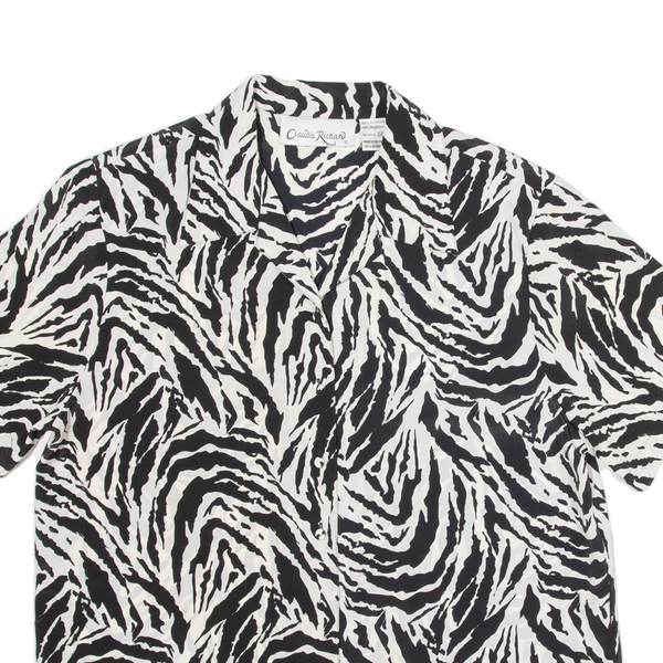 CLAUDIA RICHARD Womens Printed Shirt White Collared Crazy Pattern M
