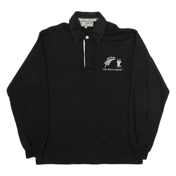 CLOUDS The Haka Dance Mens Polo Shirt Black Long Sleeve L