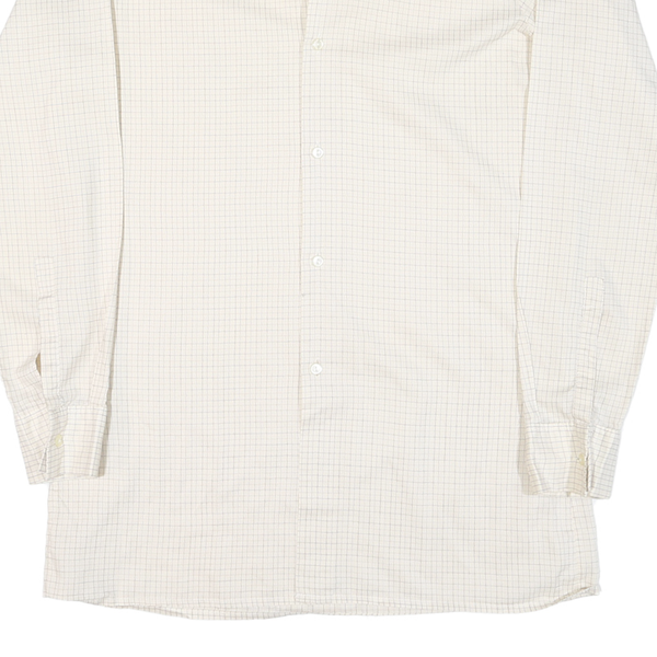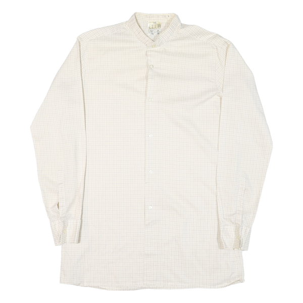 CLUB Mens Cream & Brown Check Button-Down Shirt M Lightweight Smart Casual