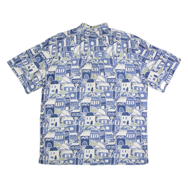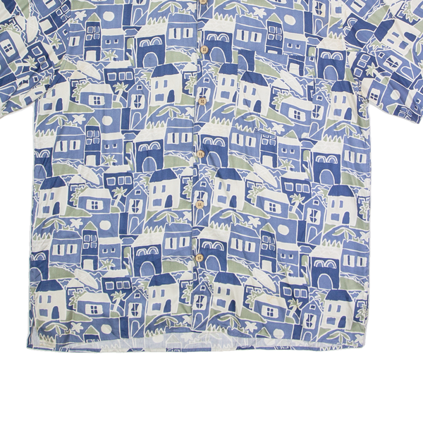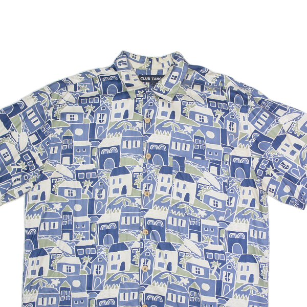 CLUB TANGO Mens Shirt Blue Silk Crazy Pattern L