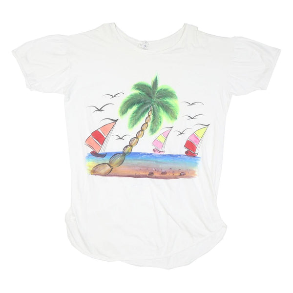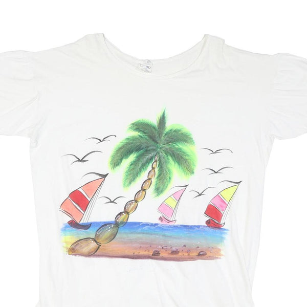Home CO SPORT Womens White Cotton Day Dress Short Sleeve XL Beach Scene Print Casual