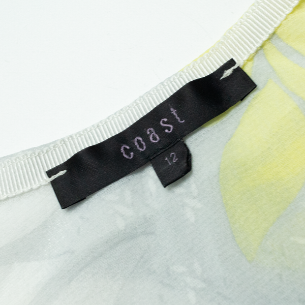 COAST Belted Womens Printed Shirt Grey V-Neck 3/4 Sleeve Floral UK 12
