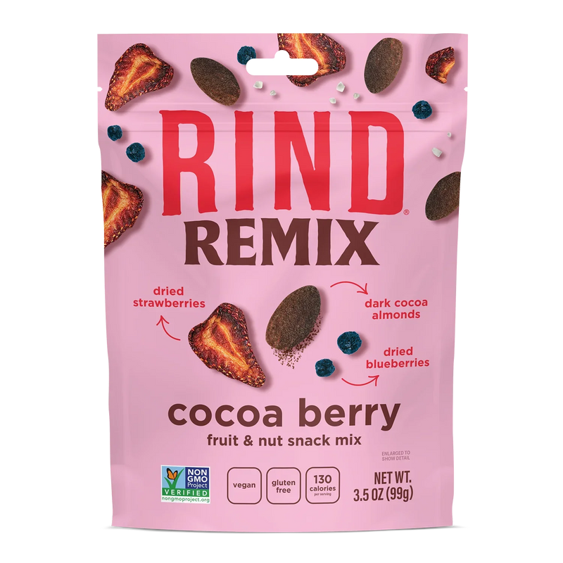 Featuring dark cocoa-dusted almonds, gently dried strawberries, and blueberries plus a pinch of sea salt, this deliciously decadent mix will satisfy any sweet tooth and help power you through the daily g’RIND!