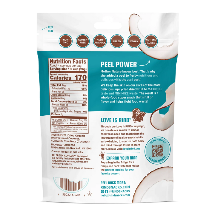 Crunchy and keto-friendly, we shaved the whole coconut into crispy smiles to maximize all the flavor and nutritional power of this king of the fruit world. Coconuts are packed with healthy fats to fuel your day as well as essential minerals, including iron, copper, manganese, and selenium to enhance your immune system.