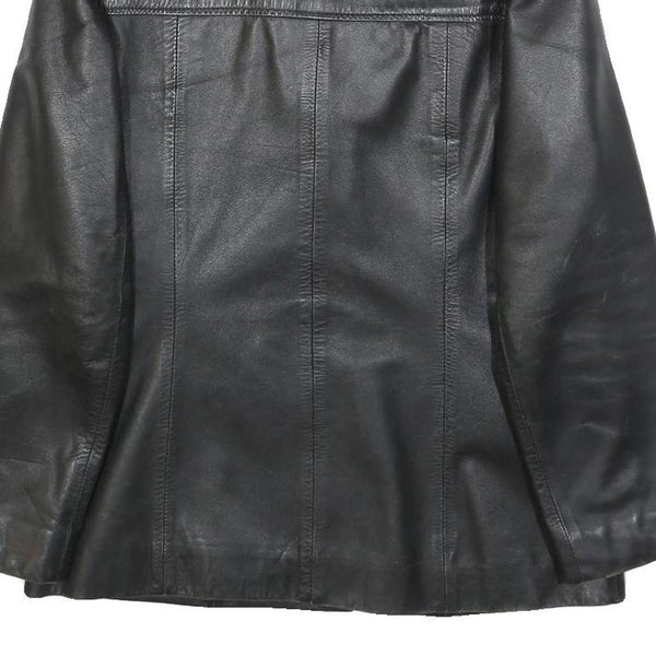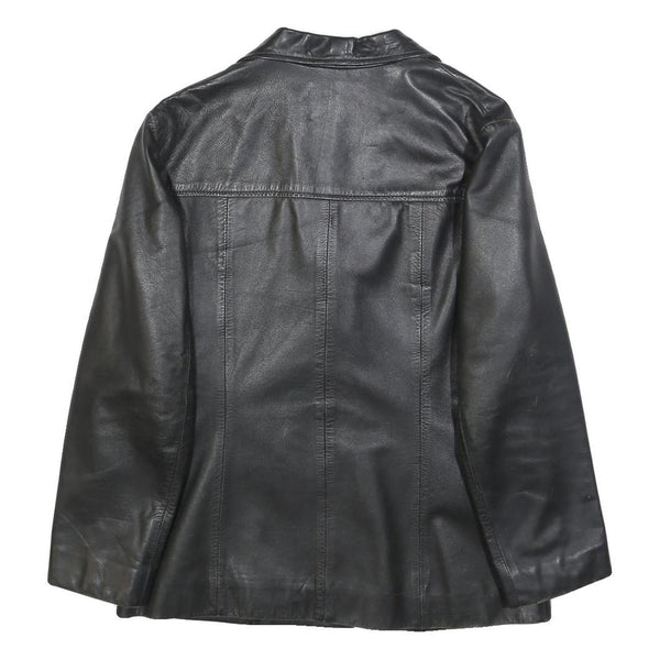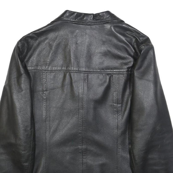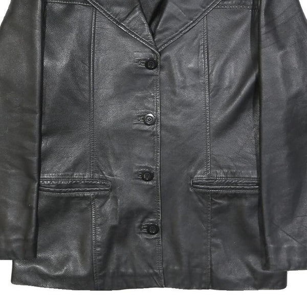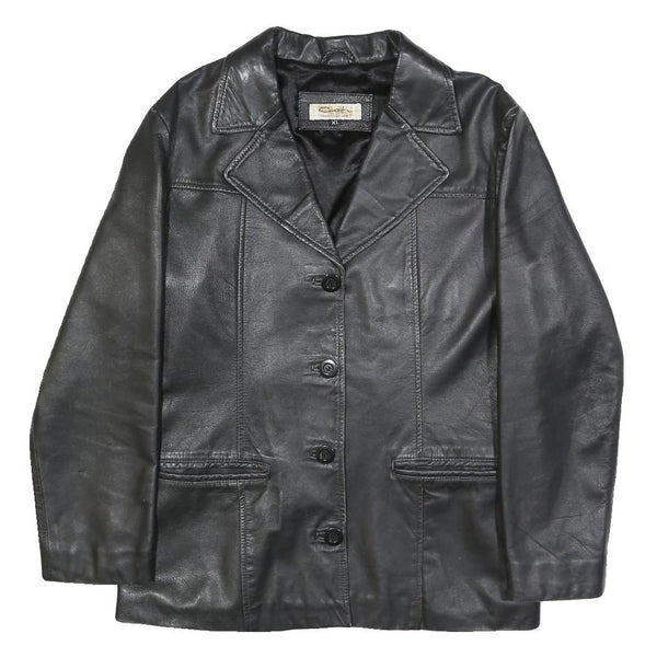 COFI Womens Black Leather Jacket XL Button Plain Stylish Classic Outerwear