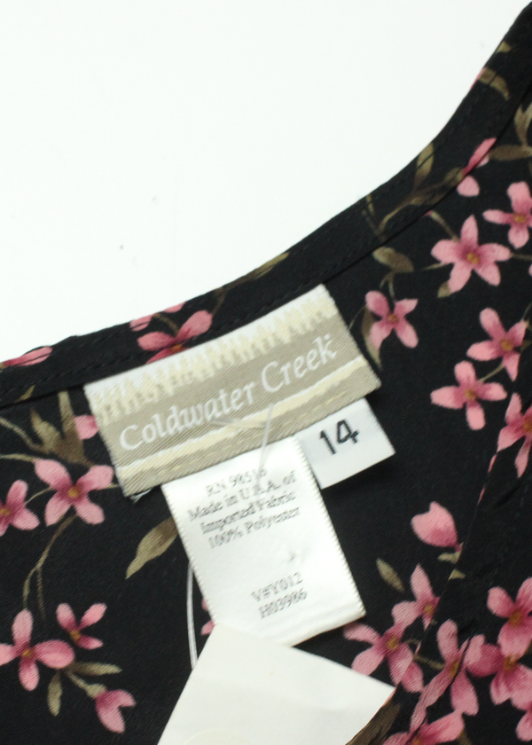 COLDWATER CREEK Womens Day Dress Black Floral Sleeveless Midi L