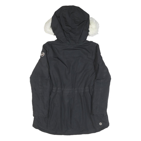 COLMAR Womens Black Faux Fur Collar Jacket M Polyester Blend Zip Hooded