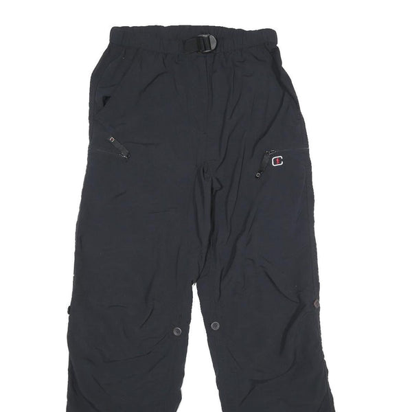These Womens COLONIAL OUTDOOR trousers come in a solid black colour, designed for comfort and practicality. They feature an elasticated waistband with an adjustable buckle belt and zip closure, offering a secure fit. There are multiple pockets including zippered side pockets, providing ample storage.
