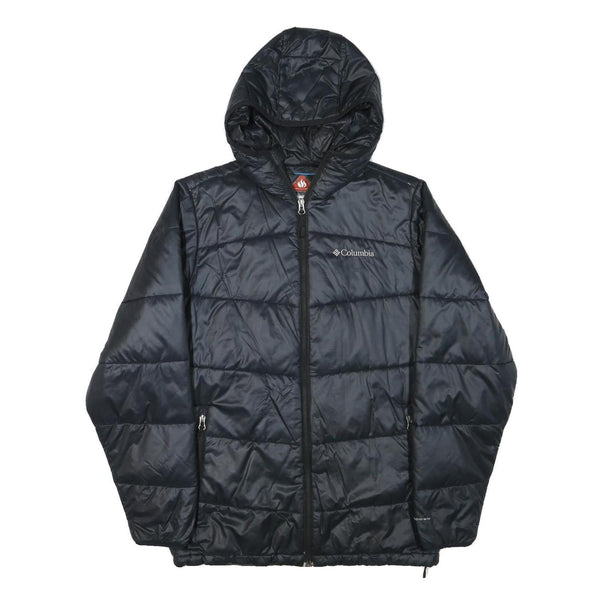 COLUMBIA Mens Black Hooded Jacket S Polyester Blend Quilted Outdoor Warm