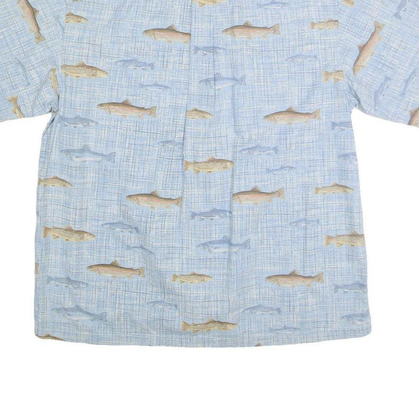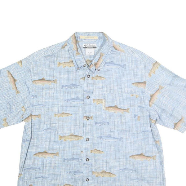 COLUMBIA Mens Blue & Beige Fish Print Cotton Shirt L Casual Outdoor Button-Down