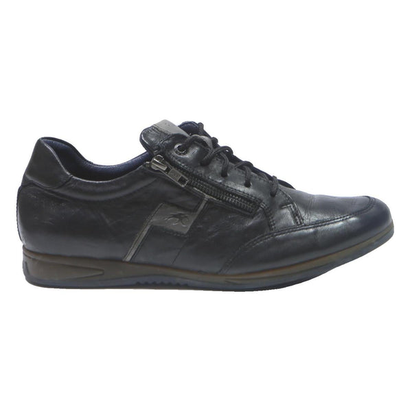 These men's shoes from Columbia are crafted from black leather, giving them a sleek and polished look. They feature a lace-up front combined with a practical zip on the side for easy wear and added style. The shoes display subtle branding embossed on the side for a minimalistic but distinctive touch.