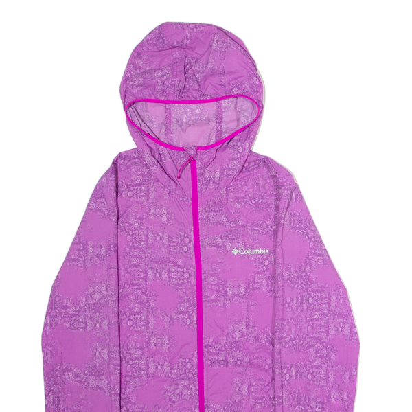 COLUMBIA Womens Rain Jacket Purple Hooded Crazy Pattern S