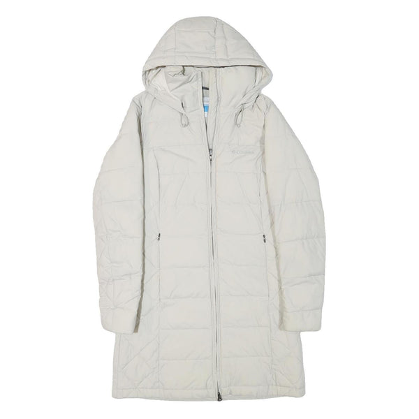 COLUMBIA Womens White Hooded Quilted Jacket S Polyester Blend Long Sleeve Zip