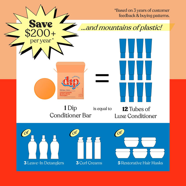 Attention all hair types, textures, dramas & backstories... You already show up for the environment, but you can literally show up every day looking your best. The Dip shampoo bar is the first of its kind & is truly magic: the LESS you press, the MORE luxurious the lather, resulting in less fear of breakage, less waste, & a much longer-lasting bar. Packed with ingredients like Prickly Pear, Amla, Plum & Passion Fruit Oil known to nourish both the scalp and hair. Dip was obsessively formulated to ensure you’d never return to the bottle.