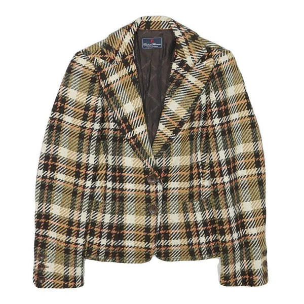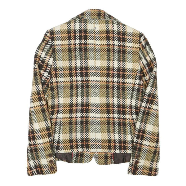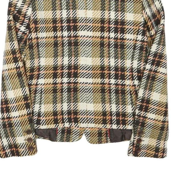 CONTE OF FLORENCE Womens Beige & Brown Check Jacket XXS Wool Blend Button