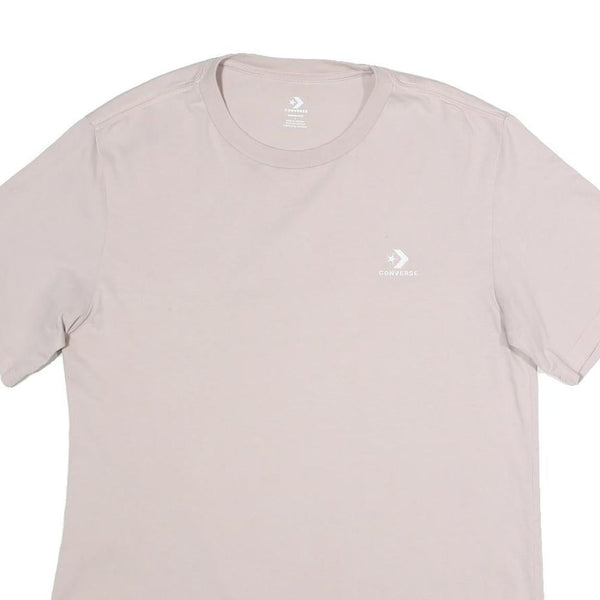 This Converse mens T-shirt features a subtle beige colour with a small white Converse logo and star graphic on the left chest, providing understated branding. The fabric is soft cotton, offering breathability and comfortable wear throughout the day.