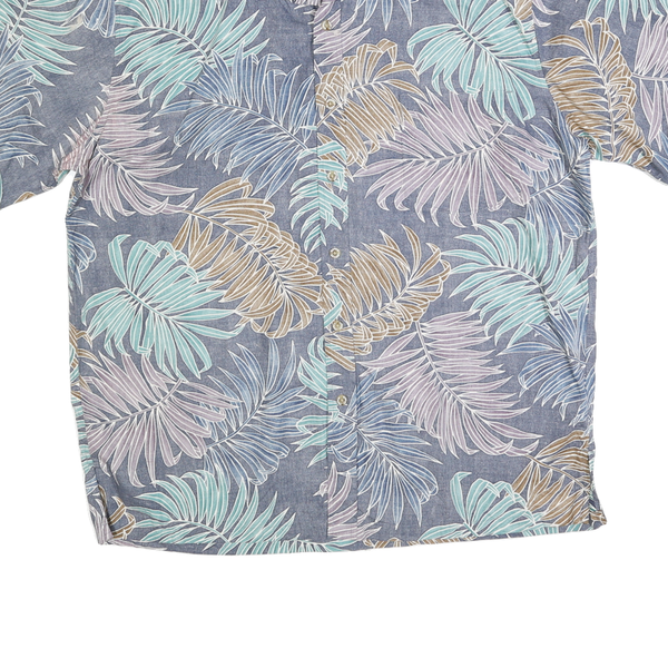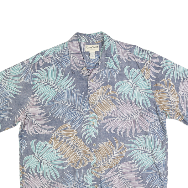 COOKE STREET Mens Blue & Brown Leaf Print Shirt XL Casual Cotton Blend Short