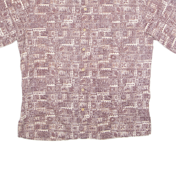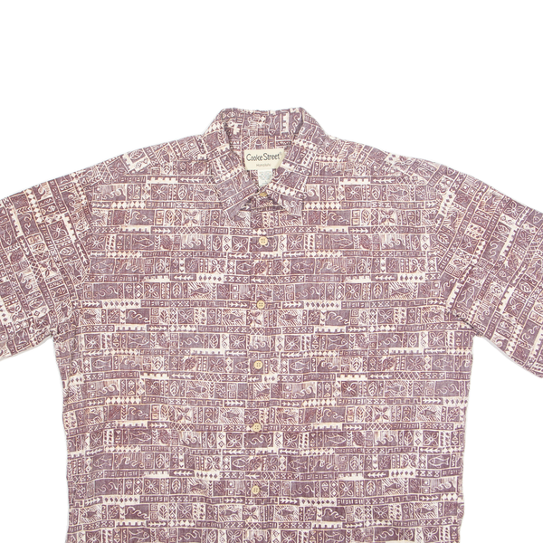 COOKE STREET Mens Hawaiian Shirt Brown Crazy Pattern L