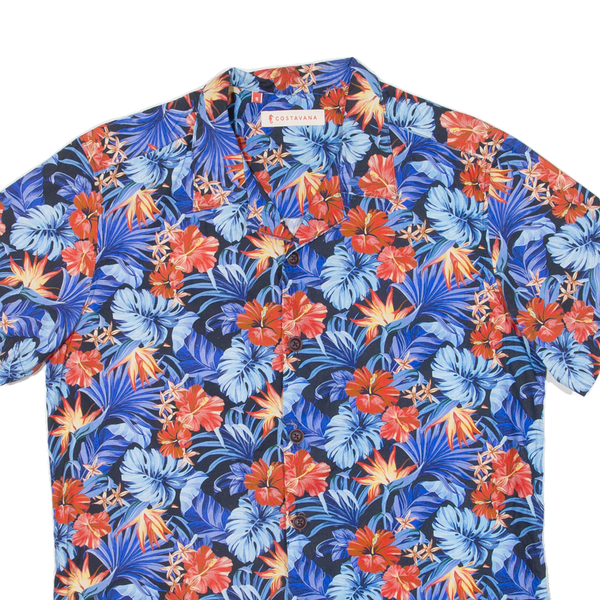 COSTAVANA Mens Hawaiian Shirt Blue Floral S