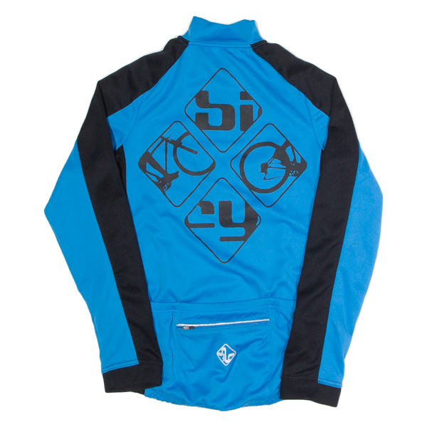 CRANE Cycling Mens Jersey Blue Long Sleeve 1/2 Zip S