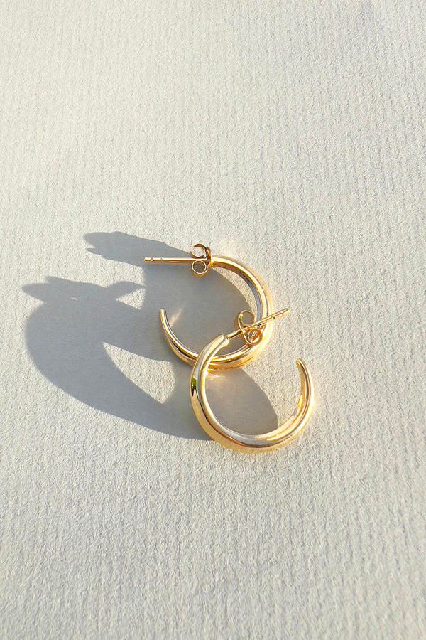 Our small Crescent hoops are simple but not basic. Minimal and modern, these unique hoops are designed to catch and reflect the light in a beautiful way.