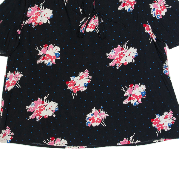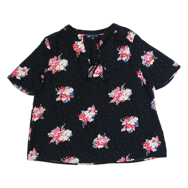 CREW CLOTHING Womens Printed Top Black V-Neck Viscose Floral UK 12