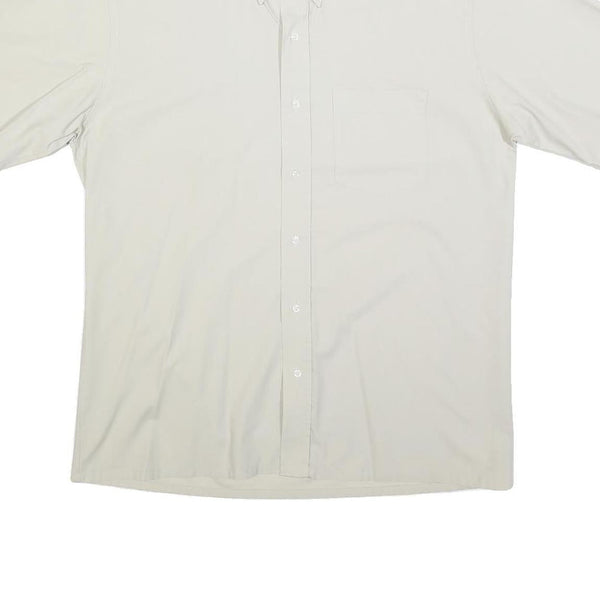 CROCODILE Mens White Plain Cotton Blend Short Sleeve Shirt L Button Down Collar