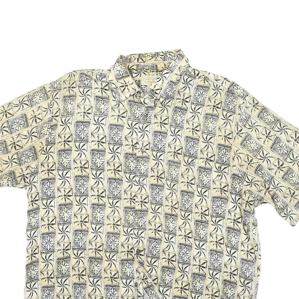 CROSSING Mens Beige Pattern Rayon Shirt L Short Sleeve Button Casual