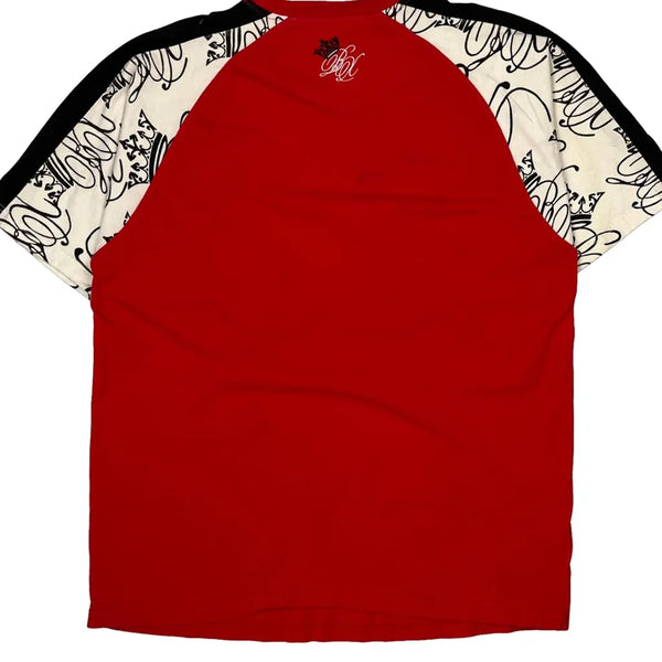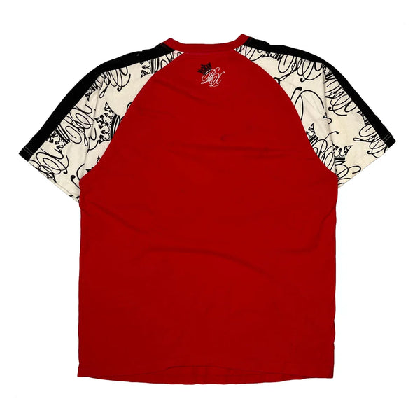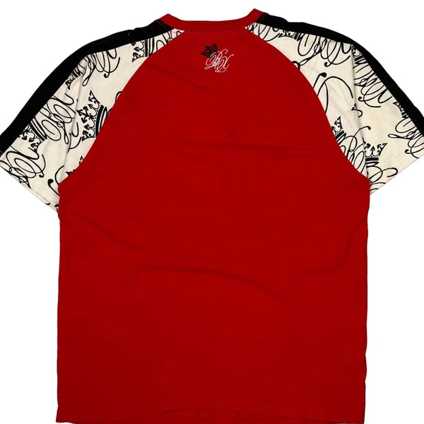 Red T-Shirt With Graphic Design And Contrasting Sleeves