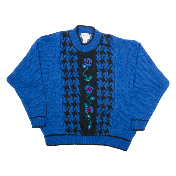 CYNTHIA Womens Patterned Jumper Blue Floral Tight Knit 2XL