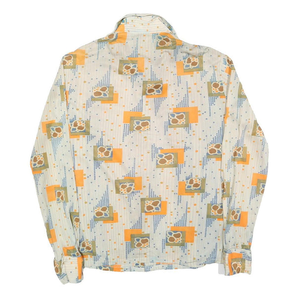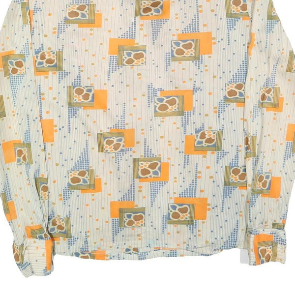 DA VINCI Mens Cream & Orange Pattern Polyester Blend Shirt M Retro Style Long