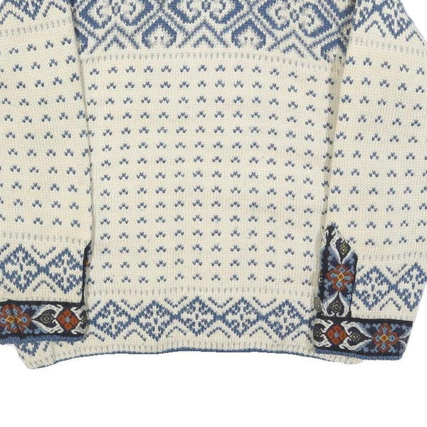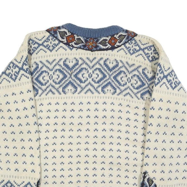 DALE OF NORWAY Womens Cream & Blue Patterned Jumper Round Neck Cable Knit M Wool
