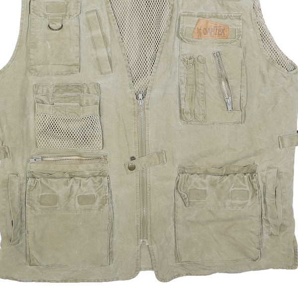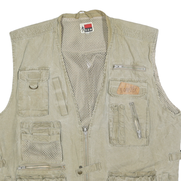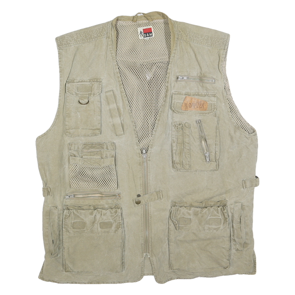 DAM Mens Beige Cotton Blend Zip Jacket 2XL Utility Vest Multi-Pocket