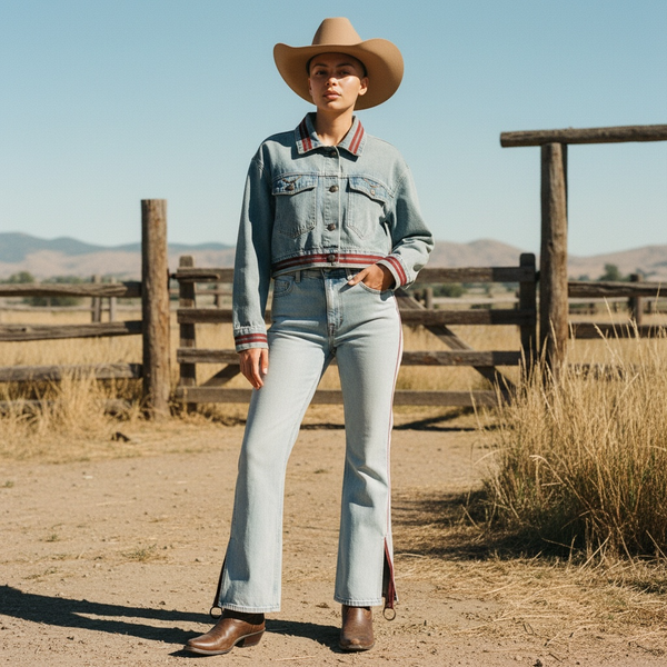Danielle Denim Jacket with Red Lining in Red is a unique take on the classic Le Réussi. This white-blue jacket has a red line collar and button-down front for a look that is effortlessly elegant or classy. It's a style you can wear year-round.