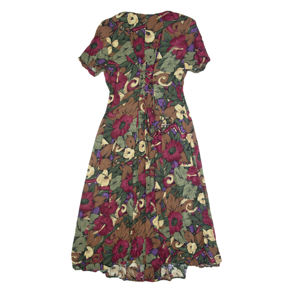 DAWN JOY FASHIONS Womens Tea Dress Green 90s Floral Short Sleeve Long S