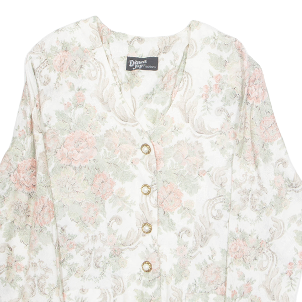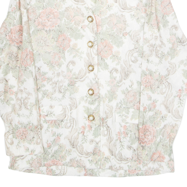 DAWN JOY Womens Printed Shirt White Collared Long Sleeve Floral M