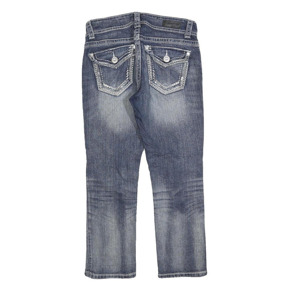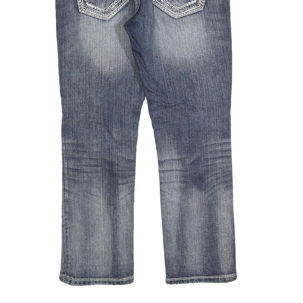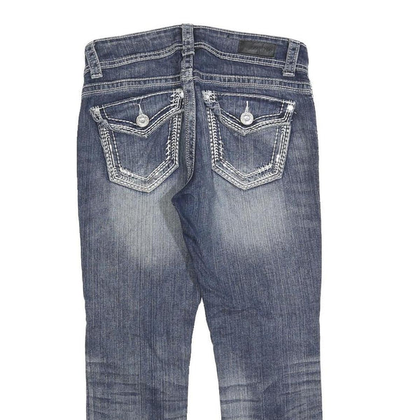 Designed with a regular fit, these jeans feature standard length legs tailored to the W30 L25 size. They fasten with a zip closure and have classic five-pocket styling, including intricately stitched back pockets with button flaps, enhancing the design detail.