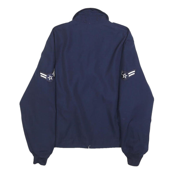 The jacket has a classic fit with ribbed cuffs for comfort and wind protection. It has a traditional collar and a plain pattern, ideal for casual or uniform-style wear. The material is robust yet comfortable, providing warmth suitable for cooler weather. Overall, this jacket is a stylish tribute to U.S. Air Force apparel with a clean and practical design.
