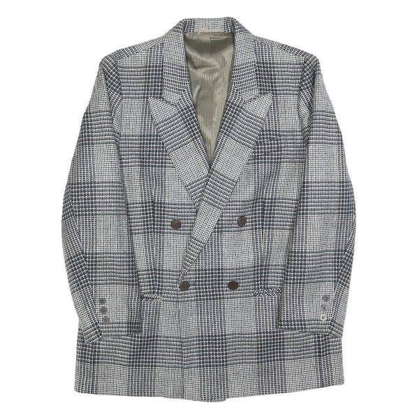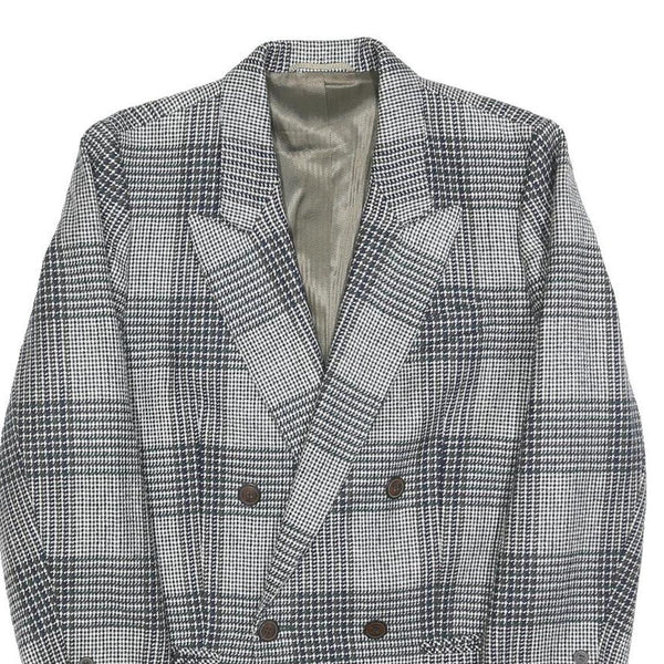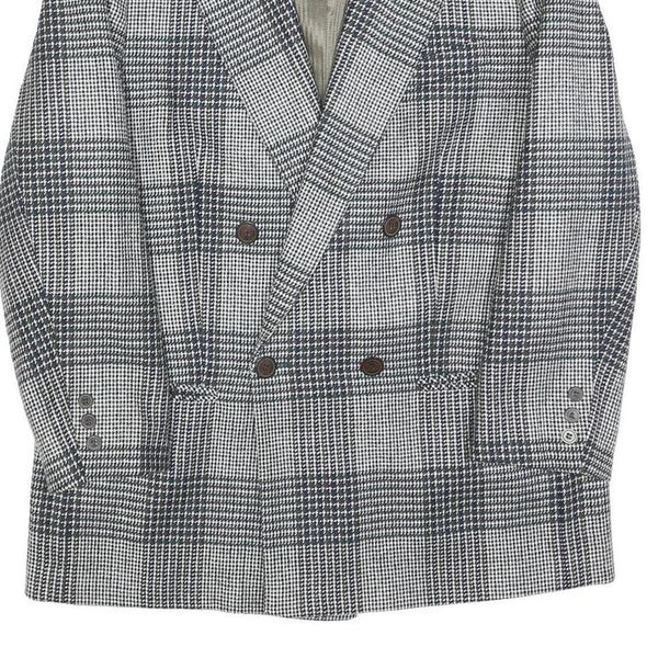 DEL MOD Mens Grey & Black Check Wool Blend Double Breasted Jacket M Woven Blazer