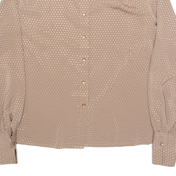 DEL MOD Womens Shirt Brown Button Neck Long Sleeve M