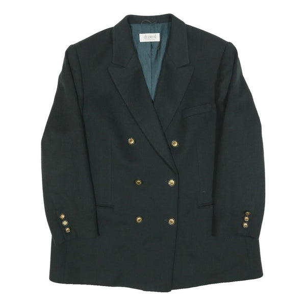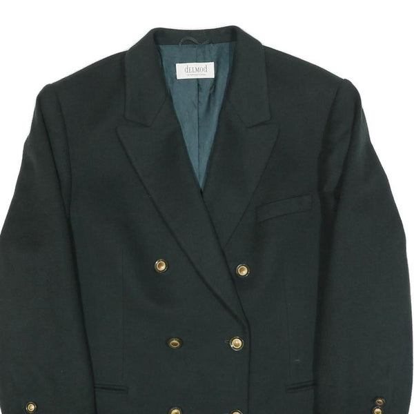 DELMOD Womens Black Wool Blend Double Breasted Jacket L Woven Classic Blazer