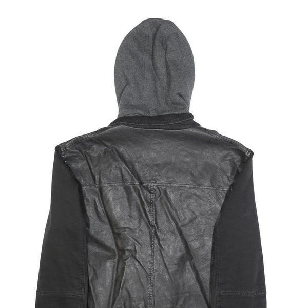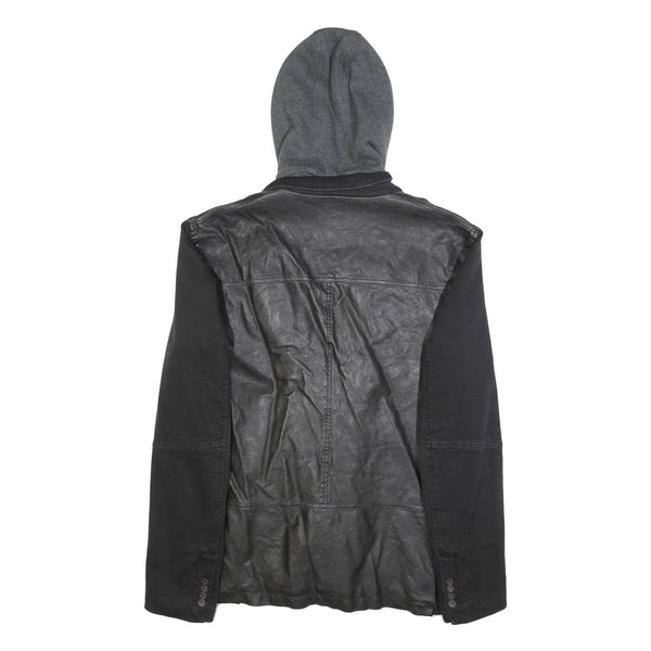 DESIGUAL Mens Black & Grey Hooded Zip Cotton Blend Jacket XL Mixed Fabric Casual