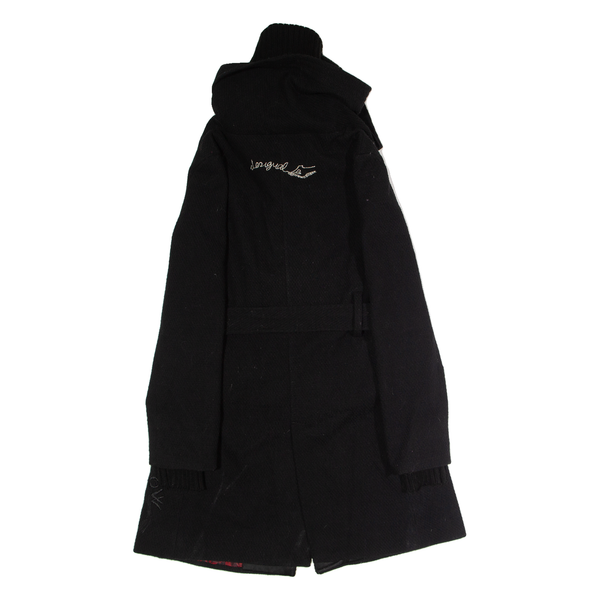 DESIGUAL Rainbow Womens Overcoat Coat Black Knit Wool UK 10