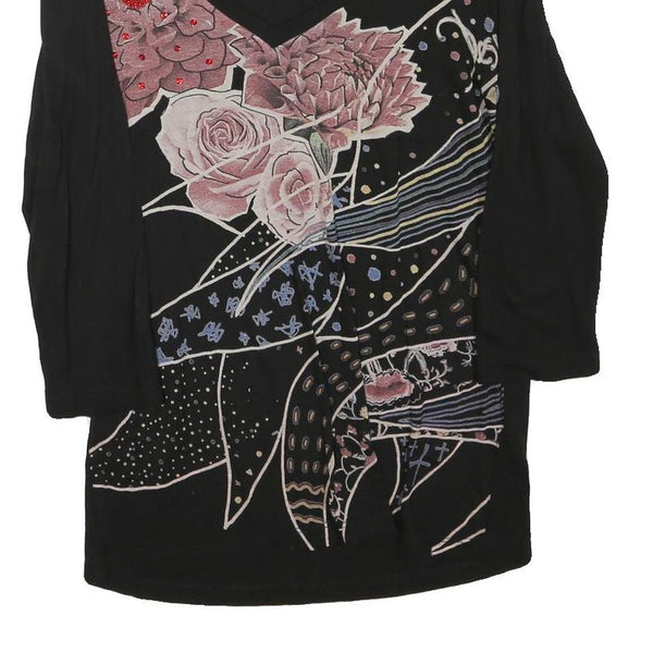 Desigual womens black floral printed v-neck long sleeve top xs stylish cotton