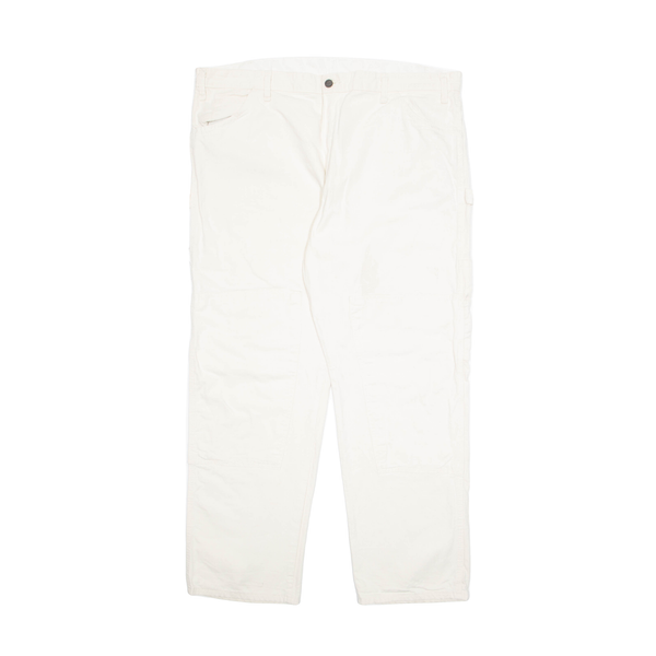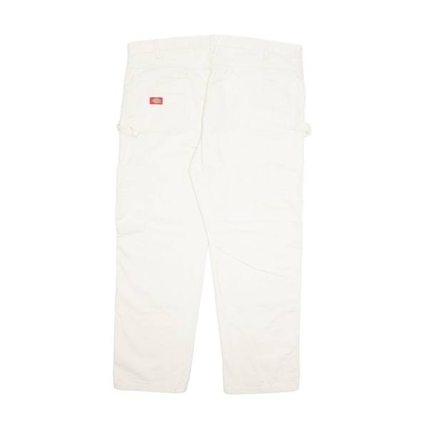 DICKIES Carpenter Cargo Mens Trousers Cream Regular Tapered W42 L32