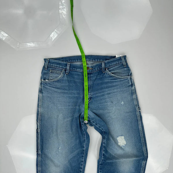 Dickies Carpenter Jeans, fit a 34″ Waist and 30″ inseam.